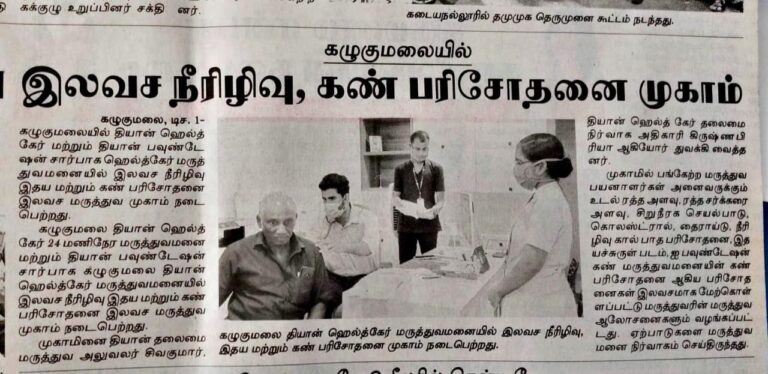 Free Sugar Camp on behalf of Dhyan Foundation in association with Venkateswarapuram on 11.02.2024 between 6.00A.M. and 8.00 A.M.